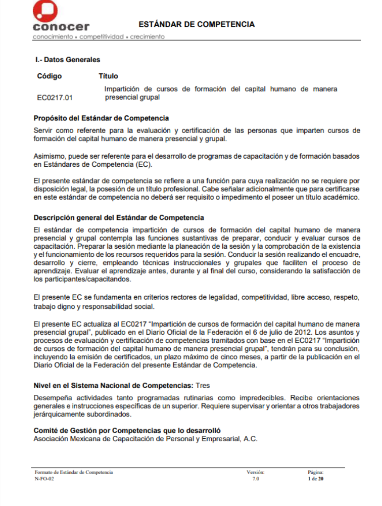 EC0217.01 Impartición de cursos de formación del capital humano de manera presencial grupal